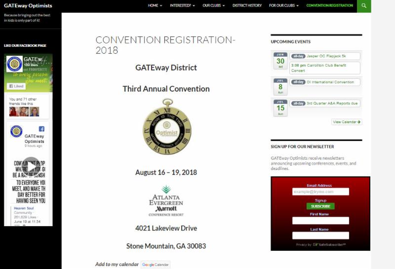 Garden Party Luncheon SaturdayLet’s have a festive luncheon on Saturday- we will have the installation of the 2018-2019 Officers and the kick-off for the Centennial Year of Optimist International.Wear your favorite Garden Party hat -let’s have some fun!Hotel InformationMake hotel accommodations directly with the hotel: (770) 879-9900 or (800) 228-9290Rate $119.00 + taxHotel cut-off date is July 26, 2018. After that date, room rate may increase and reservations will depend on availability.Be sure to indicate you are with the GATEway District of Optimist International.